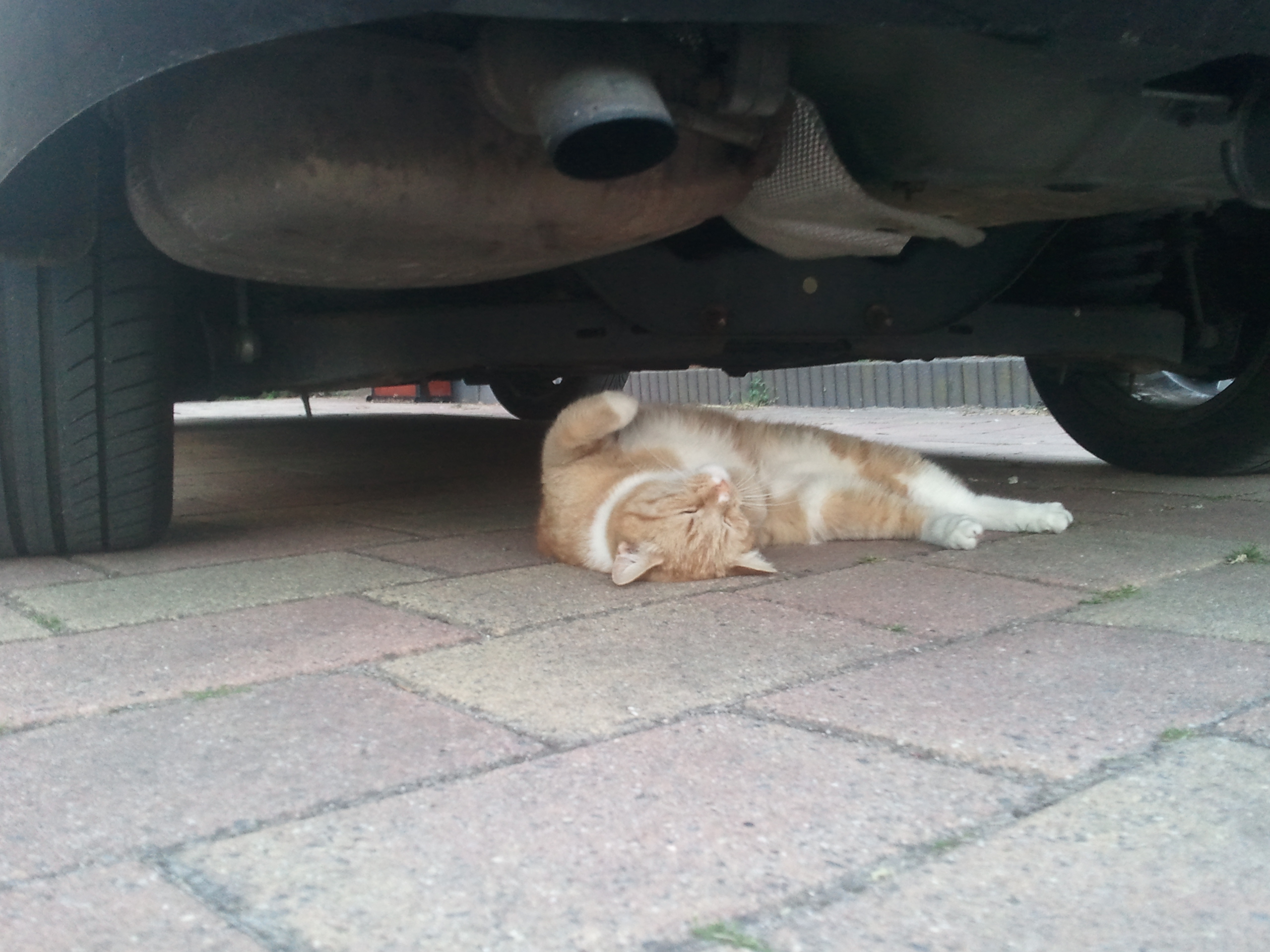 Just couldn't find him anywhere but there.. weird thing goes underneat the car, bahaving like 'adore me'.